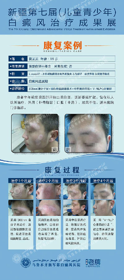 “本来我对于自己的白斑能不能恢复还是非常担心的,在学校里面,大家都不太理我,我也慢慢的害怕和人接触,抵触治疗。现在看了这么多的成功案例,有些比我严重的都治好了,我非常非常期待几个月之后的自己,希望在暑假之后,我能彻底摆脱这个病,安心回学校。”15岁的雷雷(化名)在展示板面前充满希望的说到。