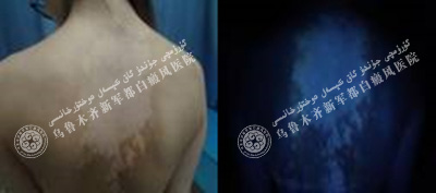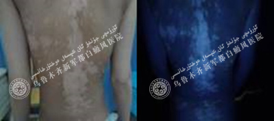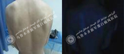 经过三个疗程的治疗,韩韩的白斑基本恢复,wood灯下看不出白斑,医生表示要继续等待抗复发治疗。