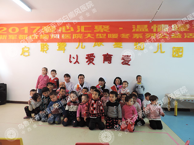 2017年11月23日,乌鲁木齐新军都白癜风医院的一群白衣天使来到了位于喀什西路北7巷的启聆聋儿康复幼儿园,对这里的听力障碍儿童进行了暖冬慰问。