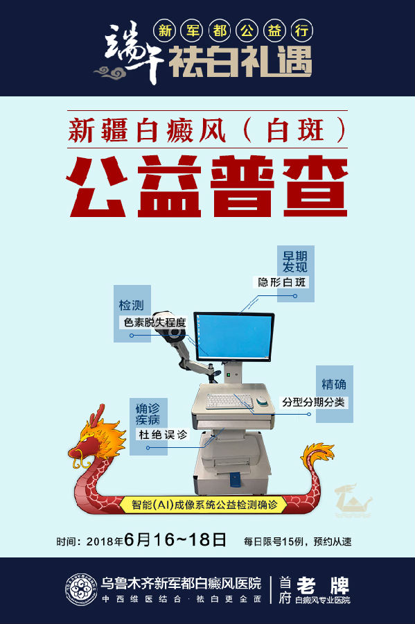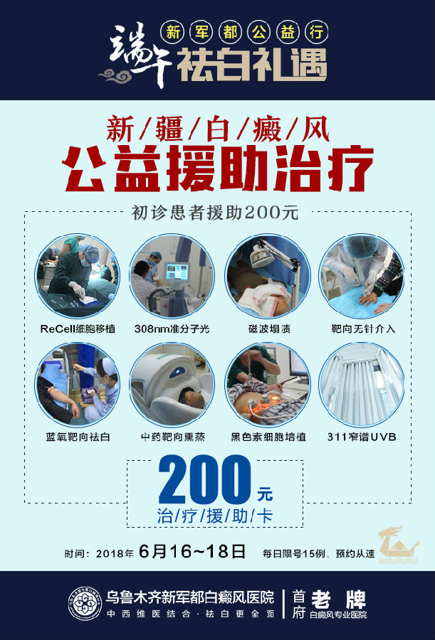 即将在6月16日至18日开展的“端午祛白礼遇”帮扶活动是新军都白癜风医院为回馈社会大众、体现社会责任感举办的公益治疗活动,多学科联合公益会诊、公益援助治疗、公益普查等活动帮助新疆白癜风患者摆脱白癜风折磨。