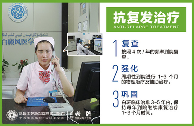 1、针对临床结束治疗的病人,乌鲁木齐新军都白癜风医院提前做好告知工作,按照程序定期需到医院做复查以及抗复发治疗,治疗周期根据复查情况;